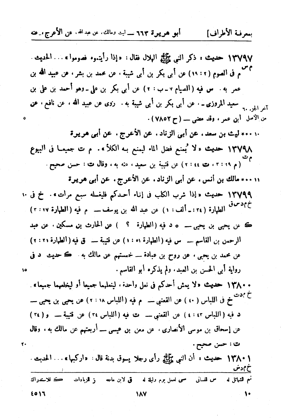 13799 -[خ م د س ق] حديث إذا شرب الكلب في إناء أحدكم فليغسله سبع مرات. (خ) في الطهارة (34: - ألف: 1) عن عبد الله بن يوسف -