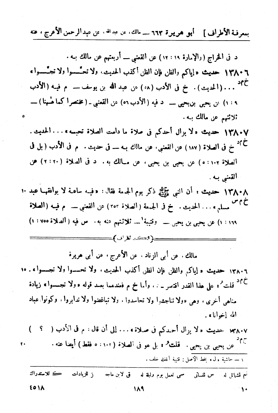 م في الأدب (بل في الصلاة 102: 5) عن يحيى بن يحيى، عن مالك به.
