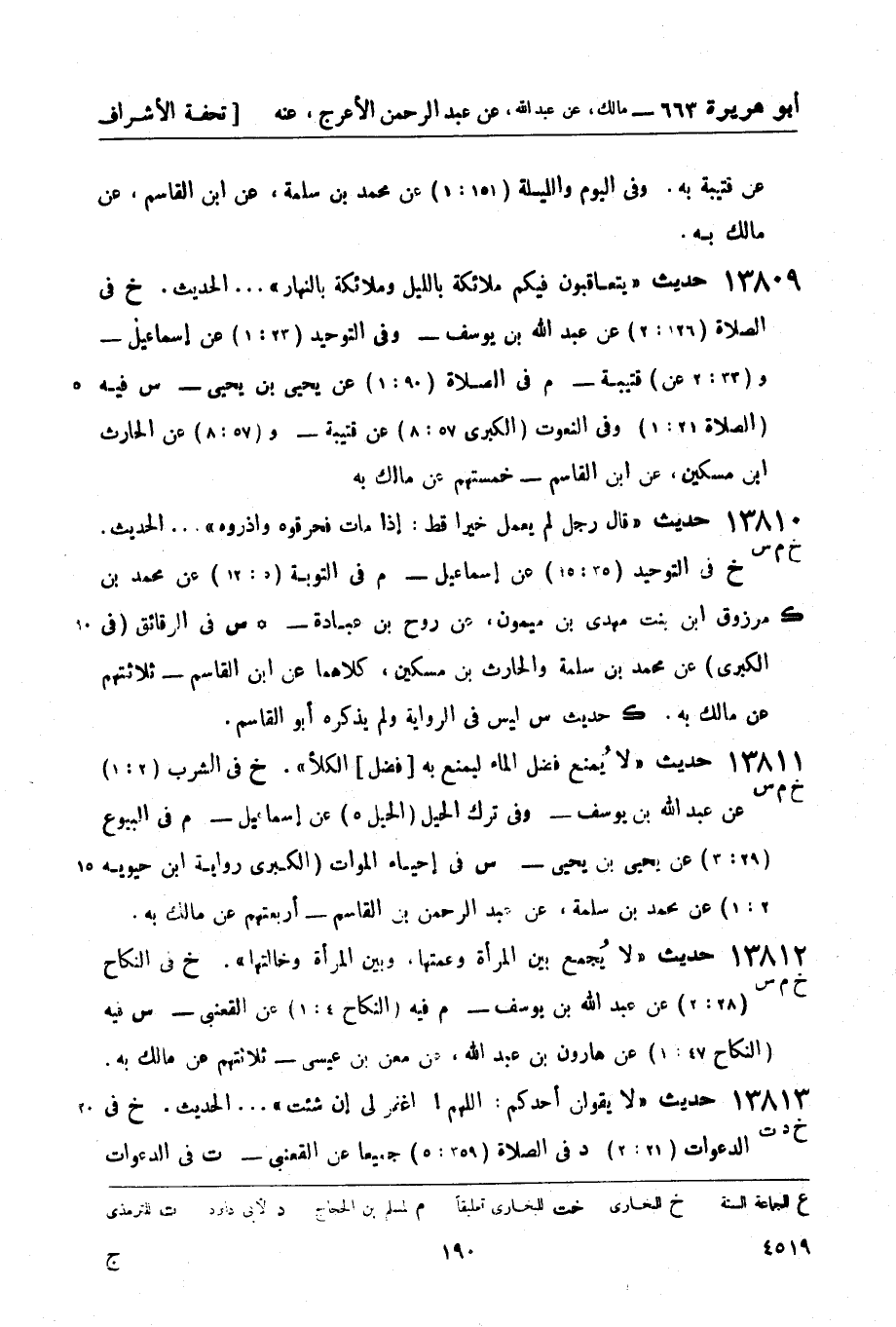 13811 -[خ م س] حديث لا يُمنع فضل الماء ليمنع به [فضل] الكلأ. (خ) في الشرب (2: 1) عن عبد الله بن يوسف - وفي ترك الحيل (الحيل 5) عن إسماعيل -