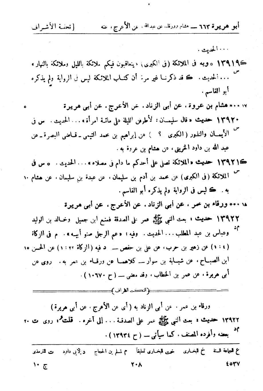 13920 - هشام بن عروة، عن أبي الزناد، عن الأعرج، عن أبي هريرة 13920