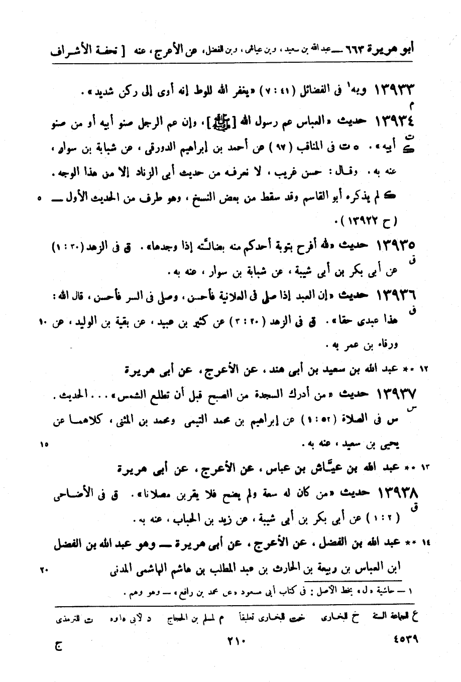 13935 -[ق] حديث لله أفرح بتوبة أحدكم منه بضالَّته إذا وجدها. (ق) في الزهد (30: 1) عن أبي بكر بن أبي شيبة، عن شبابة بن سوار، عنه به.