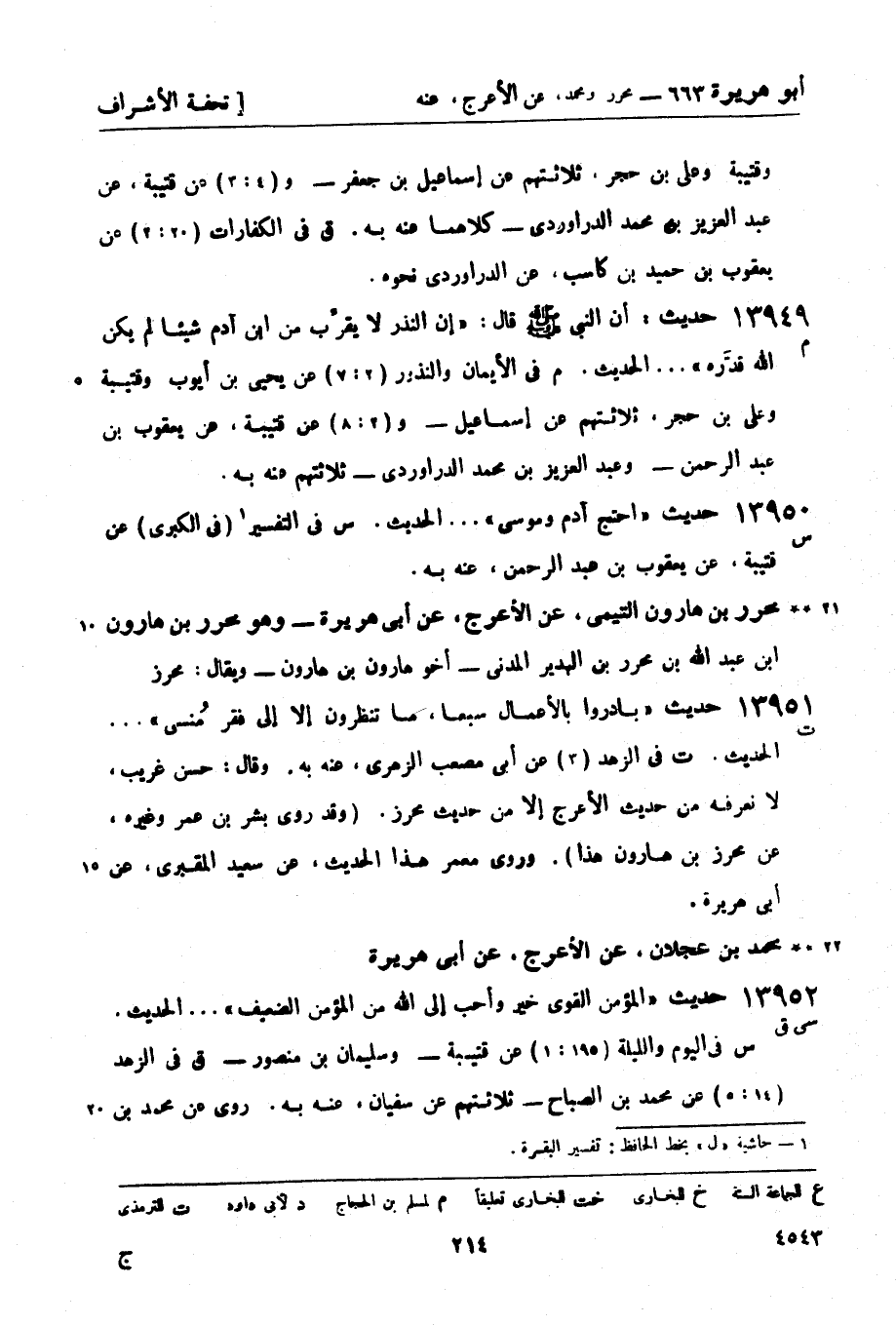 ق في الزهد (14: 5) عن محمد بن الصباح - ثلاثتهم عن سفيان، عنه به. روي عن محمد بن -[215]- عجلان، عن أبي الزناد، عن الأعرج، عن أبي هريرة، وقد مضى - (ح 13871) .