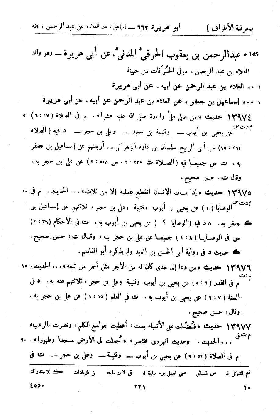 العلاء بن عبد الرحمن عن أبيه، عن أبي هريرة 1 إسماعيل بن جعفر، عن العلاء بن عبد الرحمن عن أبيه، عن أبي هريرة