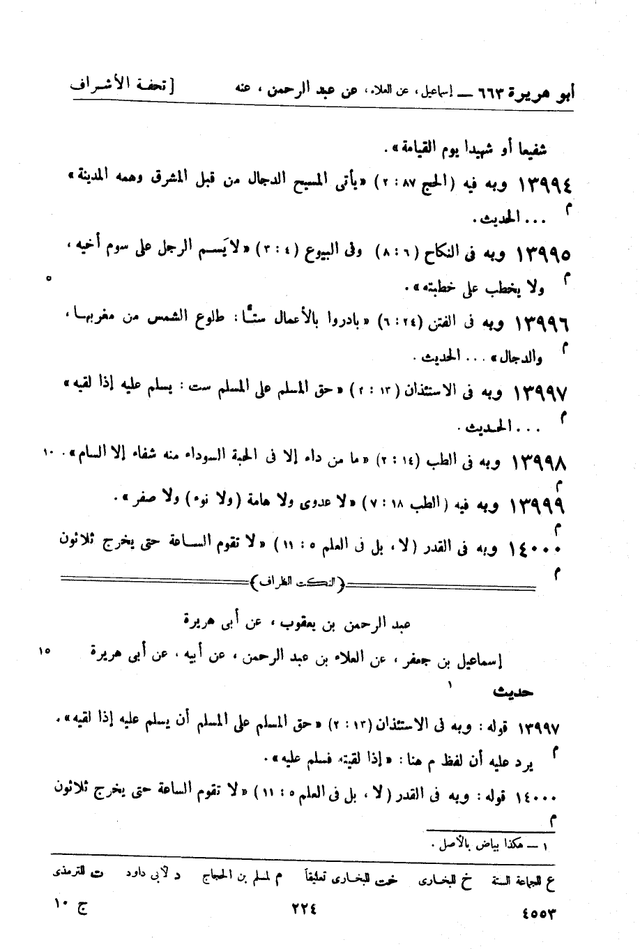 13997 -[م] وبه في الاستئذان (13: 2) حق المسلم على المسلم ست: يسلم عليه إذا لقيه ... الحديث.