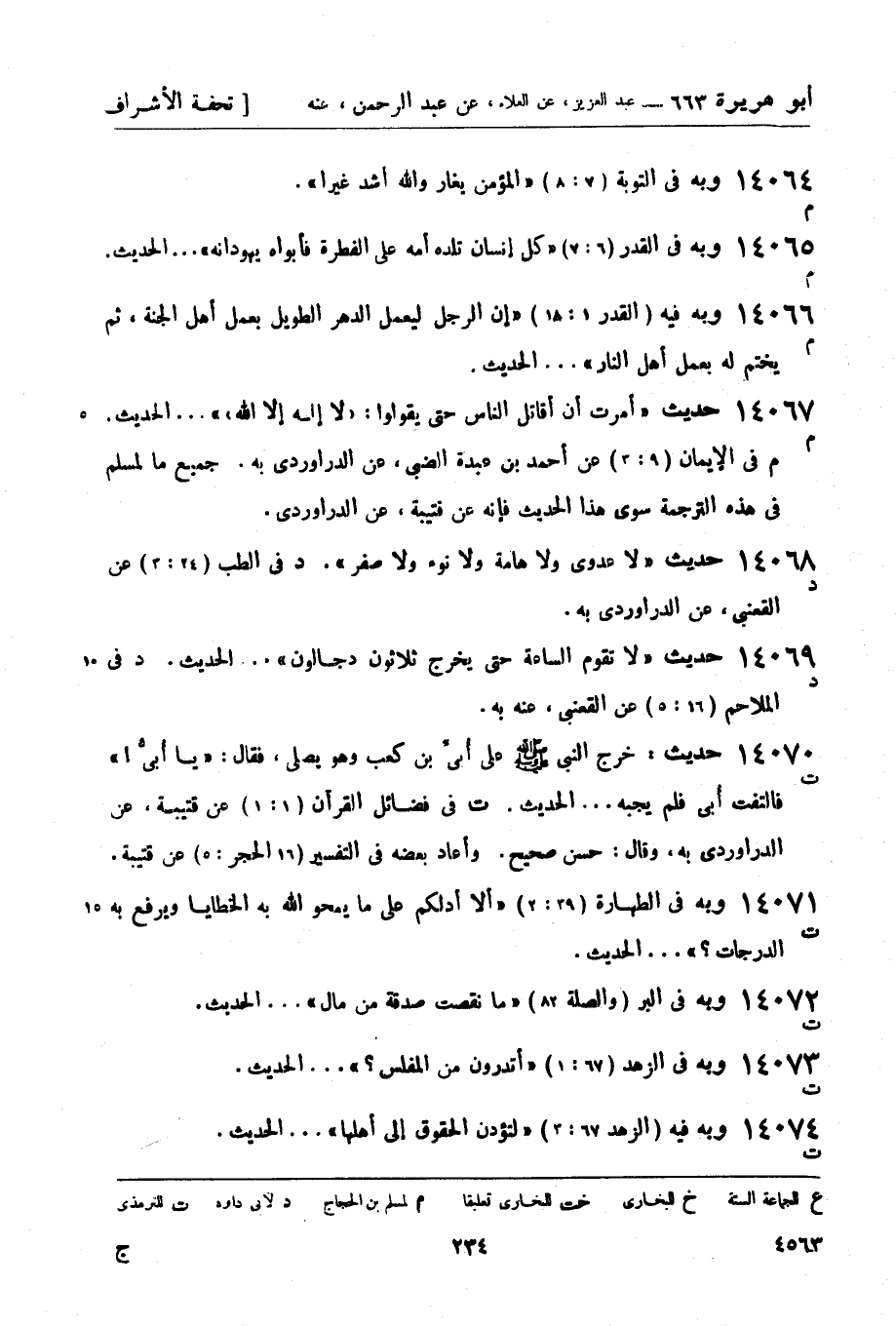 14067 -[د] حديث لاعدوى ولا هامة ولا نوء ولا صفر. (د) في الطب (24: 3) عن القعنبي، عن الدراوردي به.
