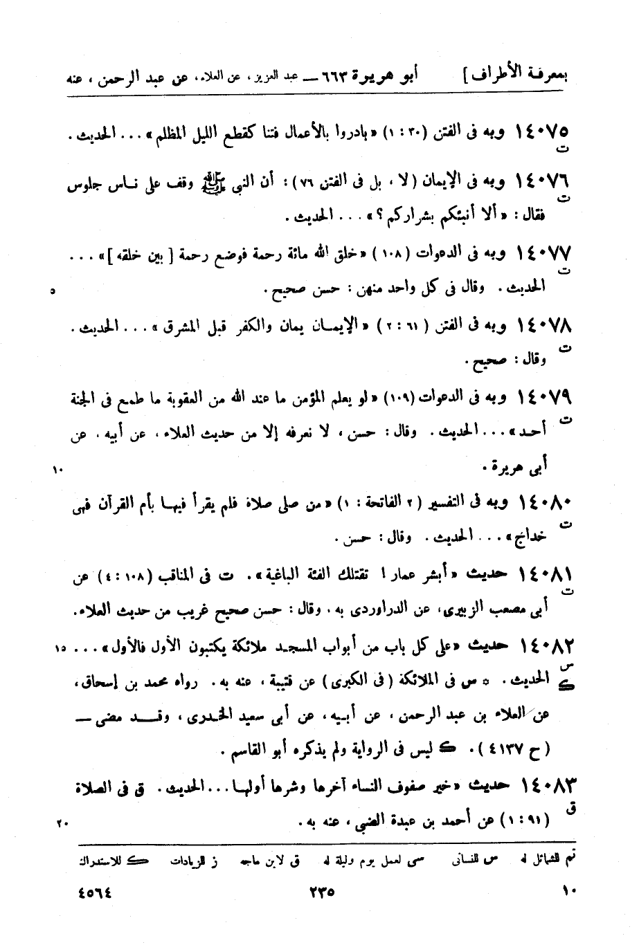 14080 -[ت] حديث أبشر عمار! تقتلك الفئة الباغية. (ت) في المناقب (108: 4) عن أبي مصعب الزبيري، عن الدراوردي به. وقال: حسن صحيح غريب من حديث العلاء.
