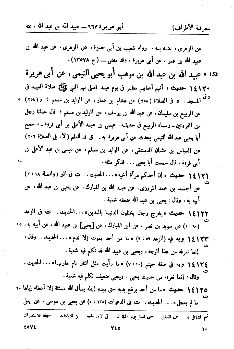 14124 - وبه في صفة جهنم (10: 7) ما رأيت مثل النار نام هاربها ... الحديث. وقال: إنما نعرفه من حديث يحيى، ويحيى ضعيف تكلم فيه شعبة.