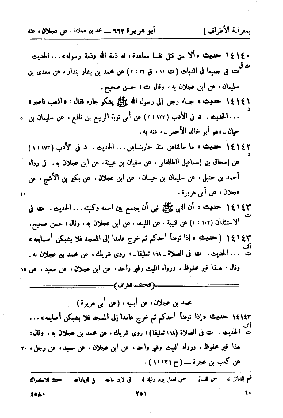 14143 - (ألف ت) (حديث إذا توضأ أحدكم ثم خرج عامداً إلى المسجد فلا يشبكن أصابعه ... الحديث. (ت) في الصلاة - 168 تعليقاً -: روى شريك، عن محمد بن عجلان به , وقال: هذا غير محفوظ، ورواه الليث وغير واحد، عن ابن عجلان، عن سعيد، عن -[252]- رجل، عن كعب بن عجرة - ح 11121) .