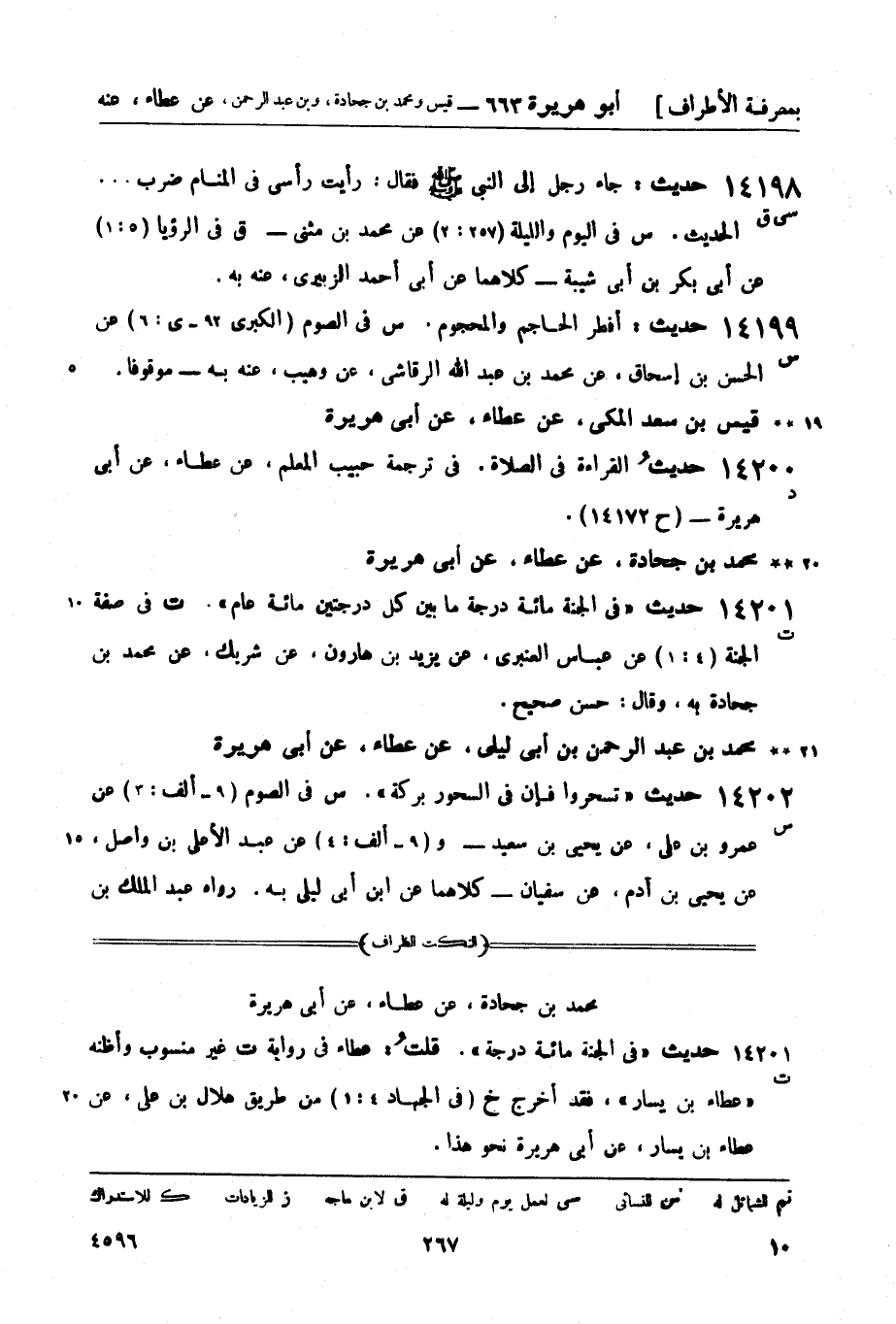 14200 - حديث القراءة في الصلاة. في ترجمة حبيب المعلم، عن عطاء، عن أبي هريرة - (ح 14172) .