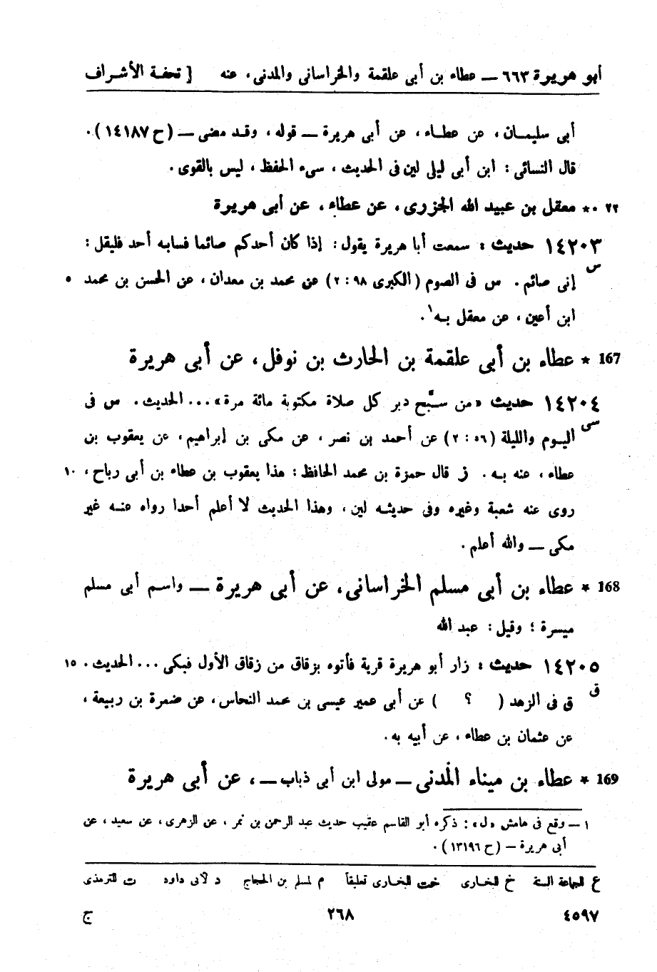 عطاء بن أبي مسلم الخراساني، عن أبي هريرة - واسم أبي مسلم ميسرة؛ وقيل: عبد الله