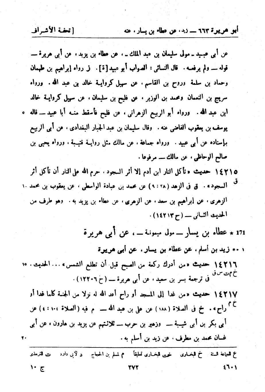 14216 -[خ م ت س ق] حديث من أدرك ركعة من الصبح قبل أن تطلع الشمس ... الحديث. في ترجمة بسر بن سعيد، عن أبي هريرة - (ح 12206) .