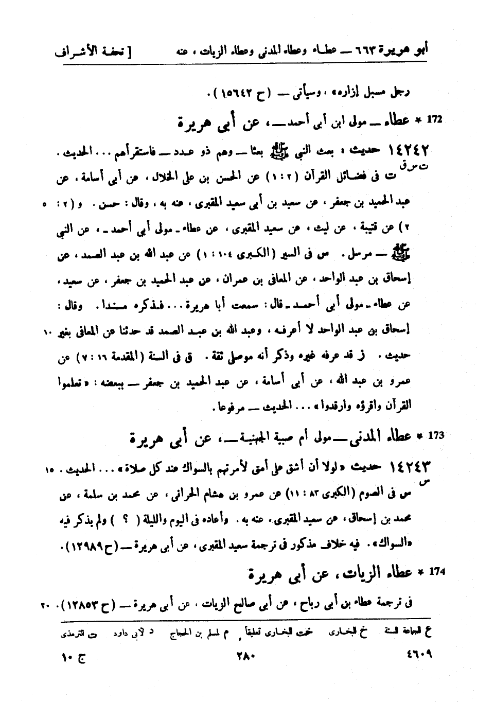 عطاء الزيات، عن أبي هريرة في ترجمة عطاء بن أبي رباح، عن أبي صالح الزيات، عن أبي هريرة - (ح 12853) .