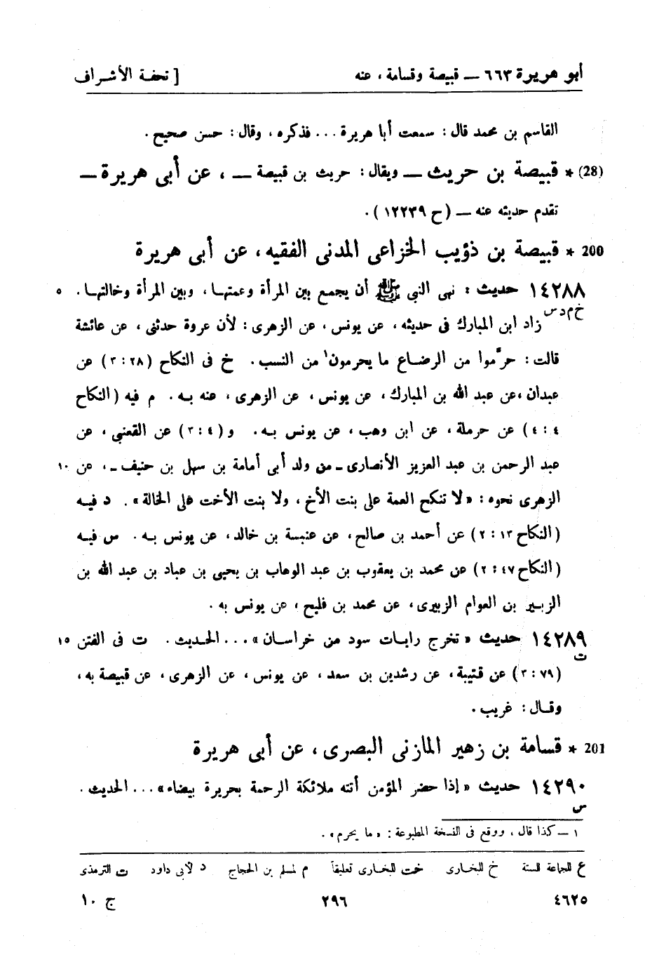 قبيصة بن ذؤيب الخزاعي المدني الفقيه، عن أبي هريرة