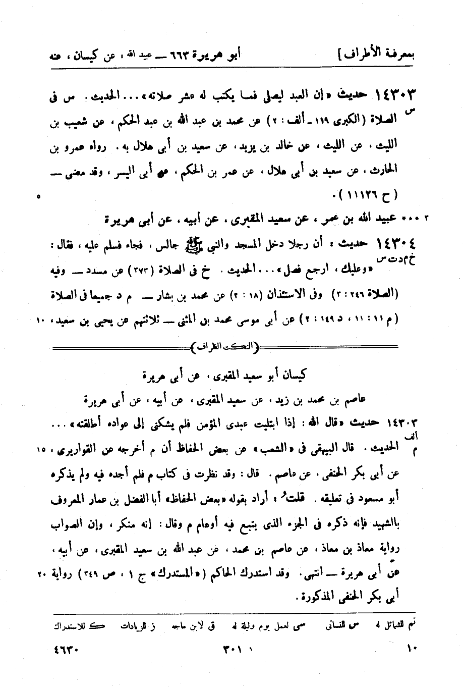 س فيه (الصلاة 264) عن محمد بن المثنى به. وقال: خولف يحيى فقيل: سعيد، عن أبي هريرة.