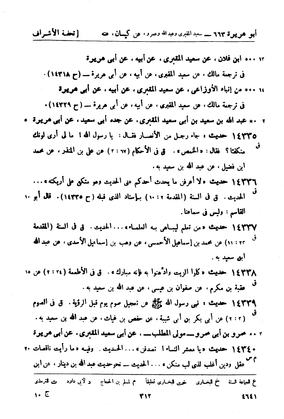 من إنباء الأوزاعي، عن سعيد المقبري، عن أبيه، عن أبي هريرة في ترجمة مالك، عن سعيد المقبري، عن أبيه، عن أبي هريرة - (ح 14329) .