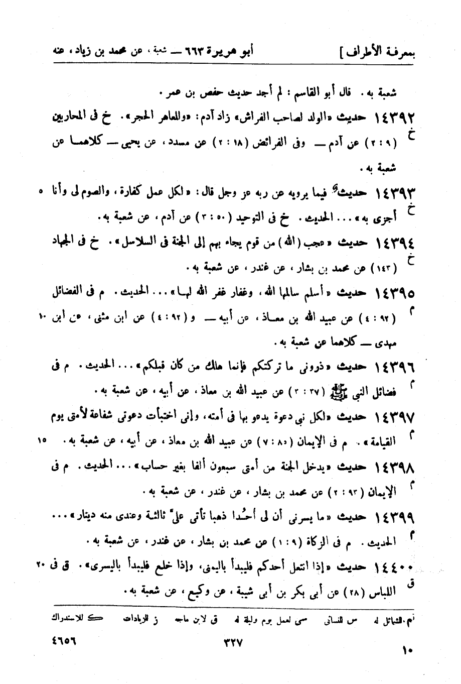 م في الفضائل (92: 4) عن عبيد الله بن معاذ، عن أبيه - و (92: 4) عن ابن مثنى، عن ابن مهدي - كلاهما عن شعبة به.
