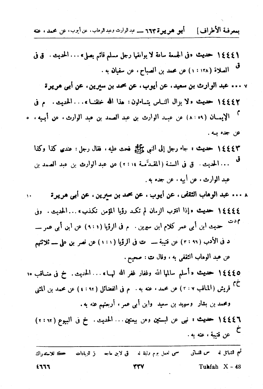 عبد الوارث بن سعيد، عن أيوب، عن محمد بن سيرين، عن أبي هريرة