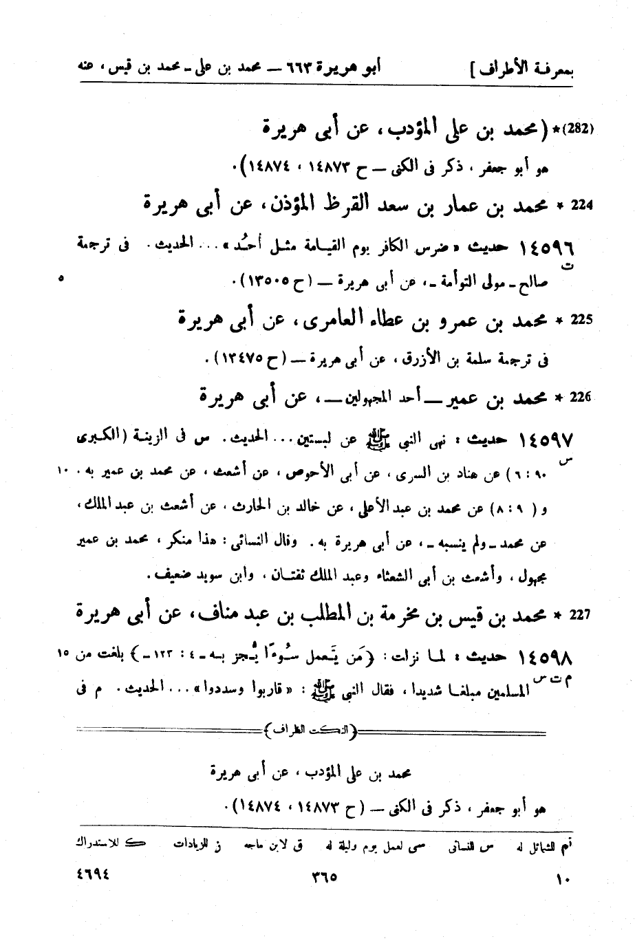 محمد بن عمرو بن عطاء العامري، عن أبي هريرة في ترجمة سلمة بن الأزرق، عن أبي هريرة - (ح 13475) .