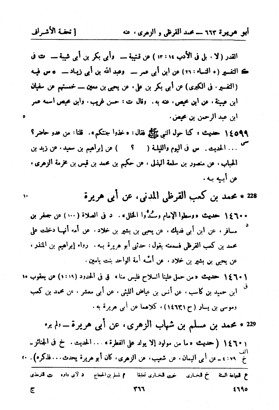 14601 -[ق] حديث من حمل علينا السلاح فليس منا (ق) في الحدود (19: 1) عن يعقوب بن حميد بن كاسب، عن أنس بن عياض الليثي، عن أبي معشر، عن محمد بن كعب وموسى بن يسار (ح 14631) ، كلاهما عن أبي هريرة به.