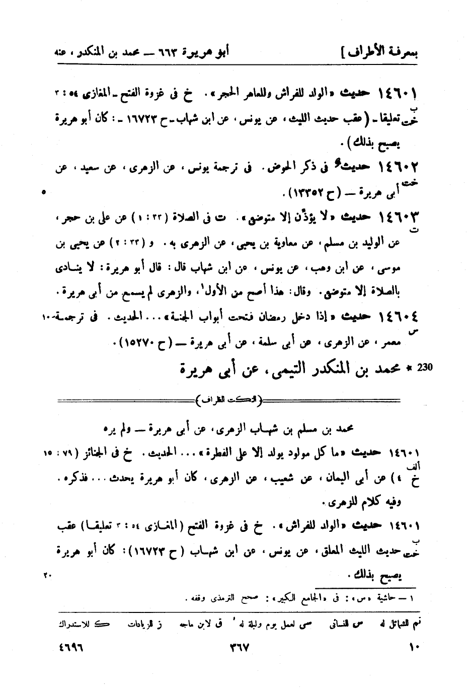 14601 - (ب خت) حديث الولد للفراش وللعاهر الحجر. (خ) في غزوة الفتح - المغازي 54: 3 تعليقاً - (عقب حديث الليث، عن يونس، عن ابن شهاب - ح 16723 -: كان أبو هريرة يصيح بذلك) .