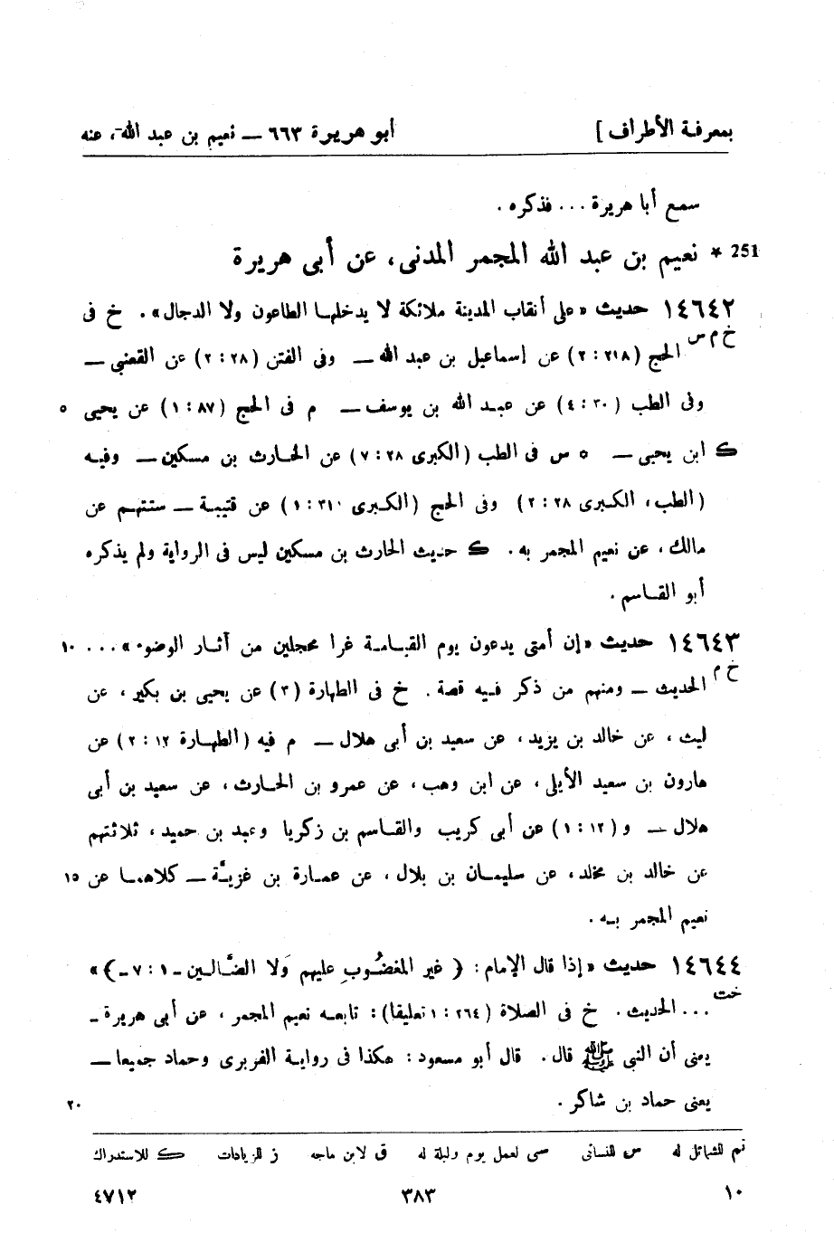 س في الطب (الكبرى 28: 7) عن الحارث بن مسكين - وفيه (الطب، الكبرى 28: 2) وفي الحج (الكبرى 31: 1) عن قتيبة - ستتهم عن مالك، عن نعيم المجمر به. (ك) حديث الحارث بن مسكين ليس في الرواية ولم يذكره أبو القاسم.