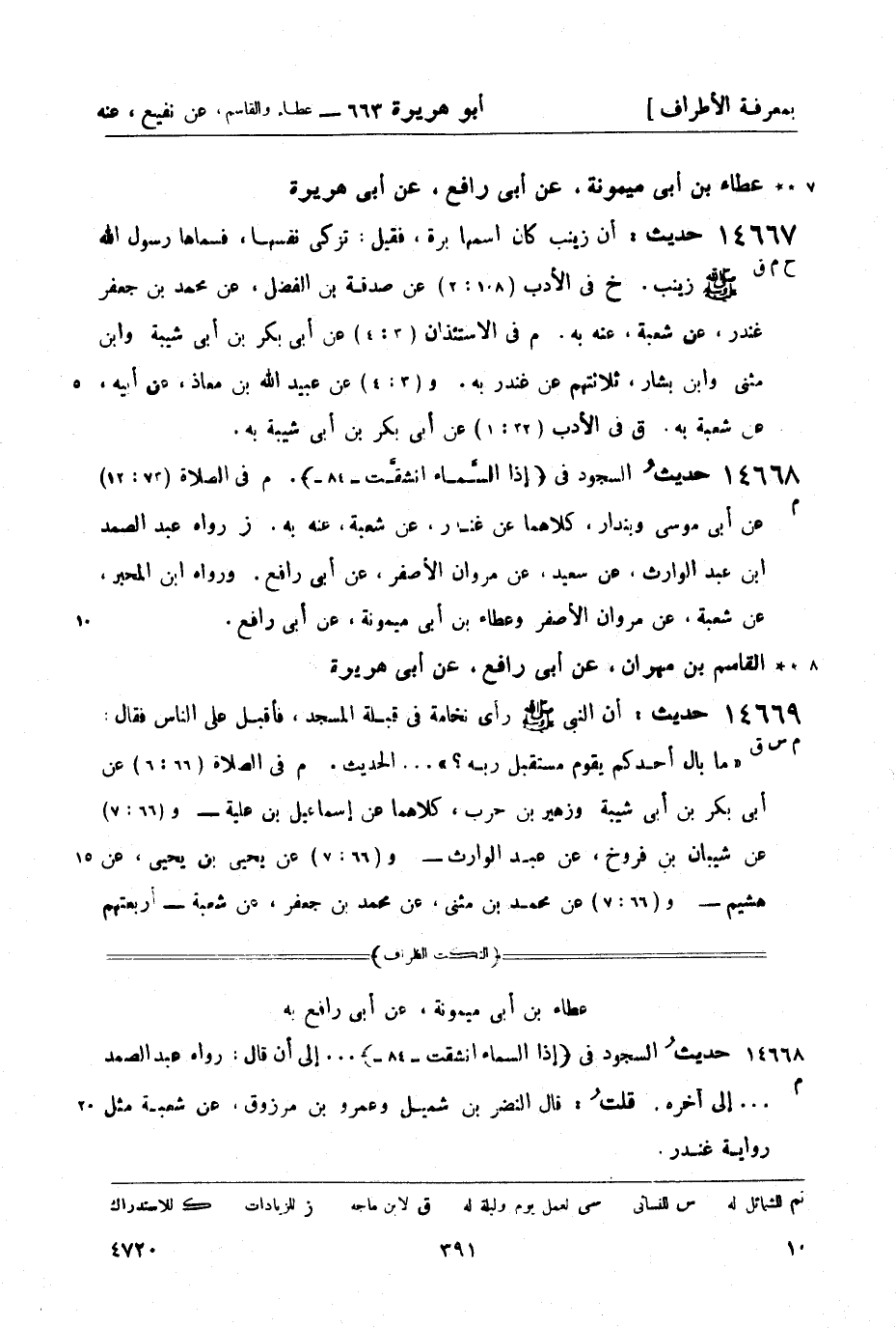 14668 -[م] حديث السجود في إذا السماء انشقت (84) . (م) في الصلاة (73: 12) عن أبي موسى وبندار، كلاهما عن غندر، عن شعبة، عنه به. (ز) رواه عبد الصمد بن عبد الوراث، عن سعيد، عن مروان الأصفر، عن أبي رافع، ورواه ابن المجبر، عن شعبة، عن مروان الأصفر وعطاء بن أبي ميمونة، عن أبي رافع.