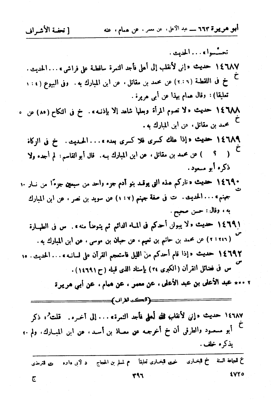 14688 -[خ] حديث لا تصوم المرأة وبعلها شاهد إلا بإذنه. (خ) في النكاح (85) عن محمد بن مقاتل، عن ابن المبارك به.