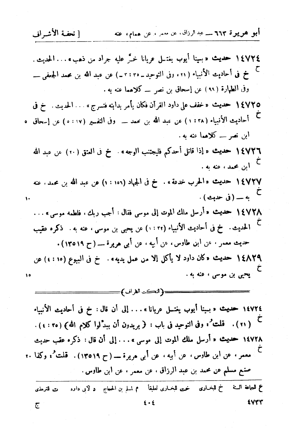 خ في أحاديث الأنبياء (32: 1) عن يحيى بن موسى، عنه به. ذكره عقيب حديث معمر، عن ابن طاوس، عن أبيه، عن أبي هريرة - (ح 13519) .