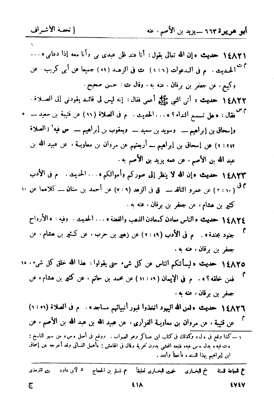 14824 -[م] حديث الناس معادن كمعادن الذهب والفضة ... الحديث. وفيه: الأرواح جنود مجندة.
