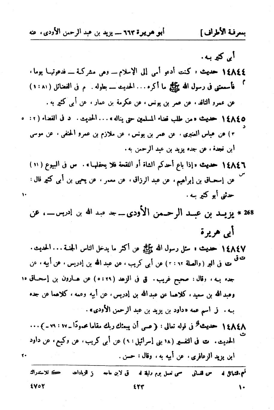 يزيد بن عبد الرحمن الأودي - جد عبد الله بن إدريس - عن أبي هريرة
