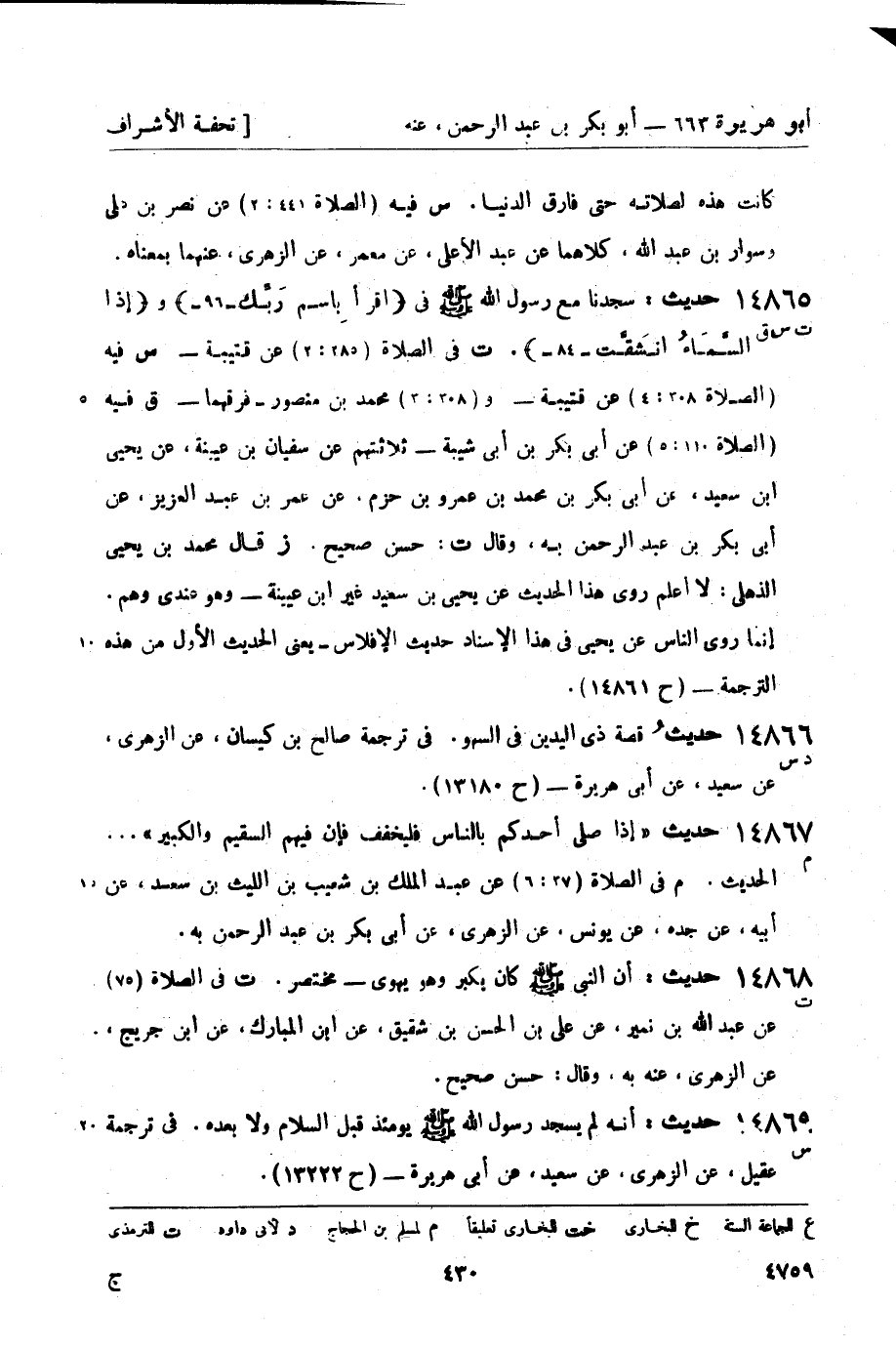 14866 - حديث قصة ذي اليدين في السهو. في ترجمة صالح بن كيسان، عن الزهري، عن سعيد، عن أبي هريرة - (ح 13180) .
