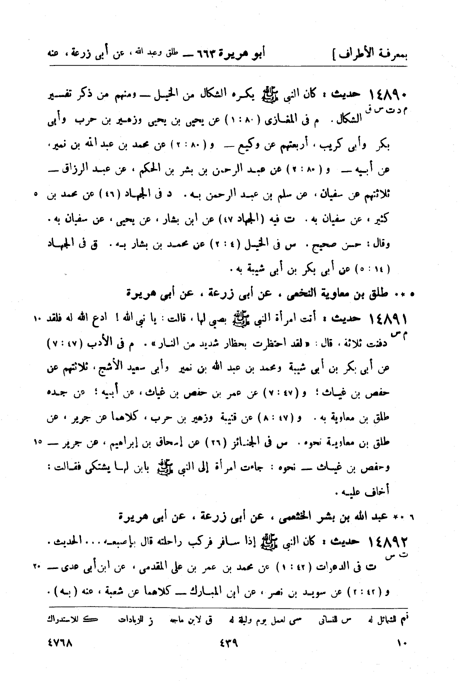 14890 -[م د ت س ق] حديث: كان النبي صَلَّى اللَّهُ عَلَيْهِ وَسَلَّمَ يكره الشكال من الخيل - ومنهم من ذكر تفسير الشكال. (م) في المغازي (80: 1) عن يحيى بن يحيى وزهير بن حرب وأبي بكر وأبي كريب، أربعتهم عن وكيع - و (80: 2) عن محمد بن عبد الله بن نمير، عن أبيه - و (80: 2) عن عبد الرحمن بن بشر بن الحكم، عن عبد الرزاق - ثلاثتهم عن سفيان، عن سلم بن عبد الرحمن به.