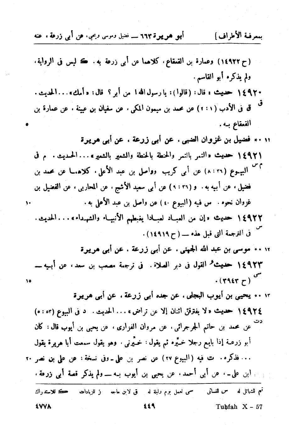 ت فيه (البيوع 27) عن نصر بن علي - وفي نسخة: عن علي بن نصر بن علي -، عن أبي أحمد، عن يحيى بن أيوب به - ولم يذكر قصة أبي زرعة، -[450]- وقال: غريب.