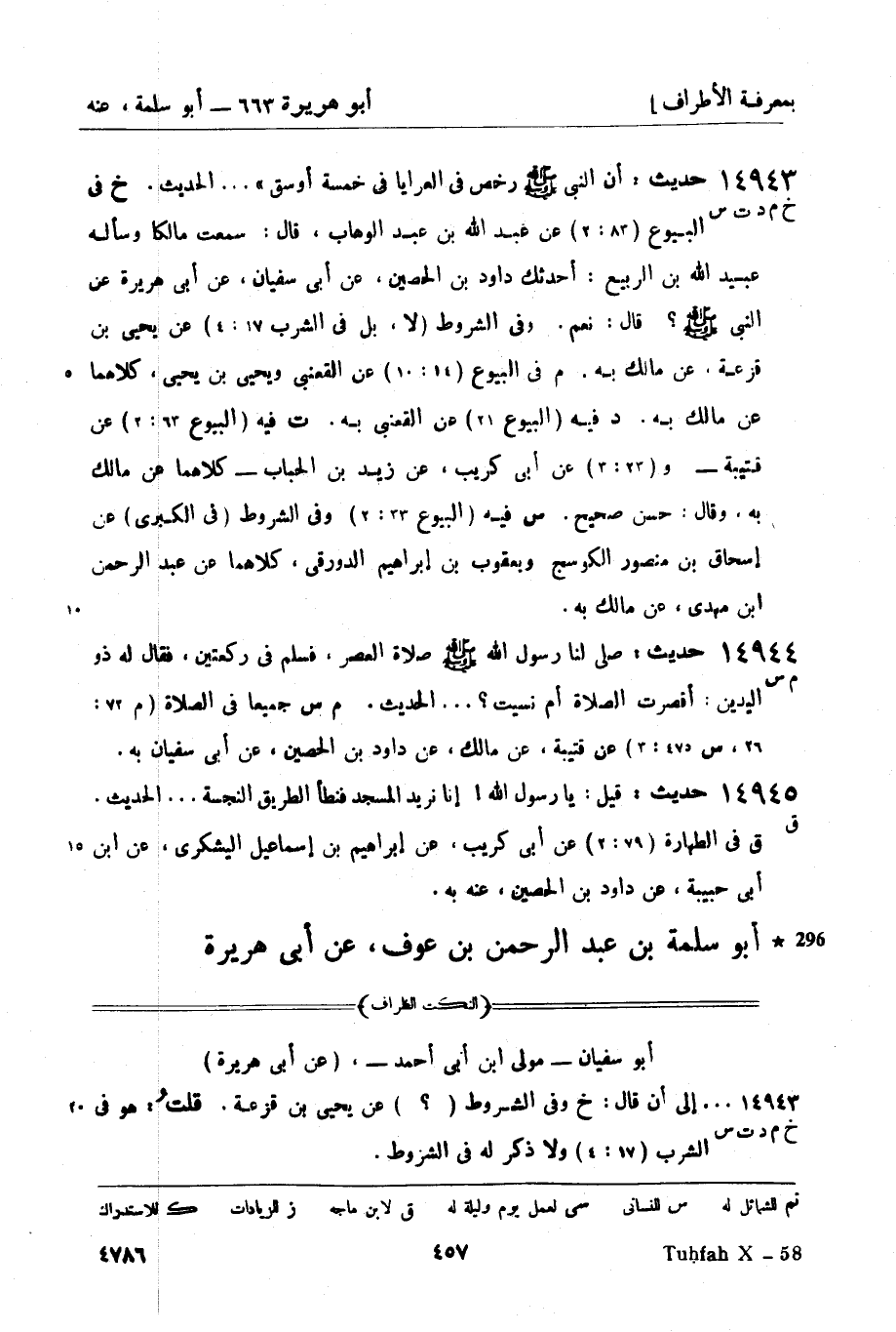 س فيه (البيوع 33: 2) وفي الشروط (في الكبرى) عن إسحاق بن منصور الكوسج ويعقوب بن إبراهيم الدورقي، كلاهما عن عبد الرحمن بن مهدي، عن مالك به.