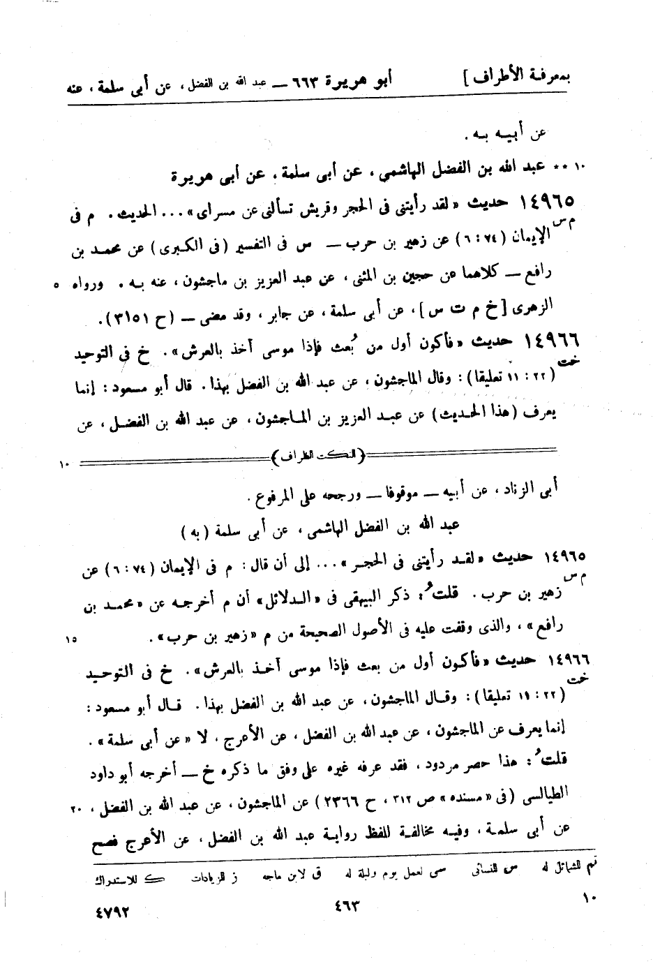 14966 -[خت] حديث فأكون أول من بُعث فإذا موسى آخذ بالعرش. (خ) في التوحيد (22: 11: تعليقاً) : وقال الماجشون، عن عبد الله بن الفضل بهذا. قال أبو مسعود: إنما يعرف (هذا الحديث) عن عبد العزيز بن الماجشون، عن عبد الله بن الفضل، عن -[464]- الأعرج، عن أبي هريرة - (ح 13939) .