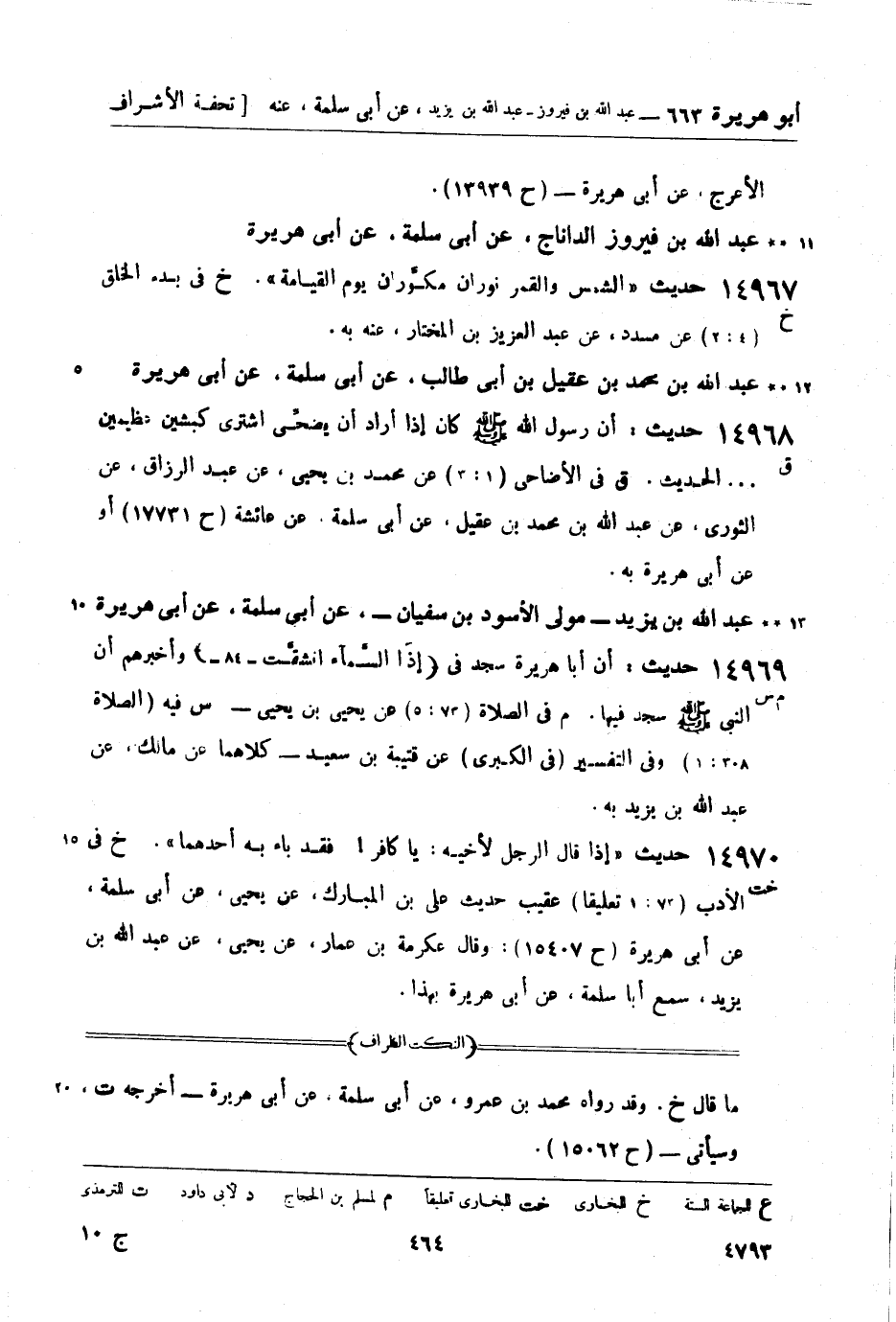 14969 -[م س] حديث: أن أبا هريرة سجد في إذا السَّماء انشقَّت (84) وأخبرهم أن النبي صَلَّى اللَّهُ عَلَيْهِ وَسَلَّمَ سجد فيها. (م) في الصلاة (73: 5) عن يحيى بن يحيى -