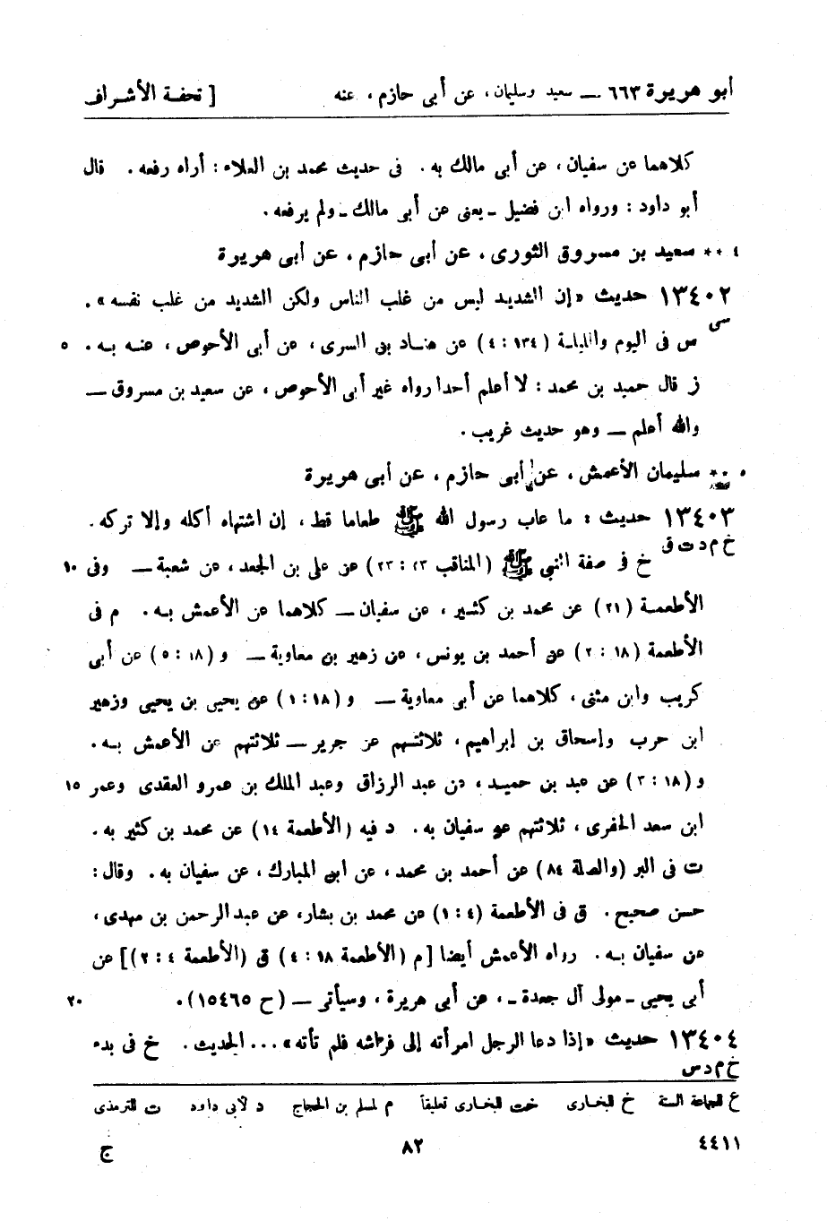 13402 -[سي] حديث إن الشديد ليس من غلب الناس ولكن الشديد من غلب نفسه. (س) في اليوم والليلة (134: 4) عن هناد بن السري، عن أبي الأحوص، عنه به. (ز) قال حميد بن محمد: لا أعلم أحداً رواه غير أبي الأحوص، عن سعيد بن مسروق - والله أعلم - وهو حديث غريب.