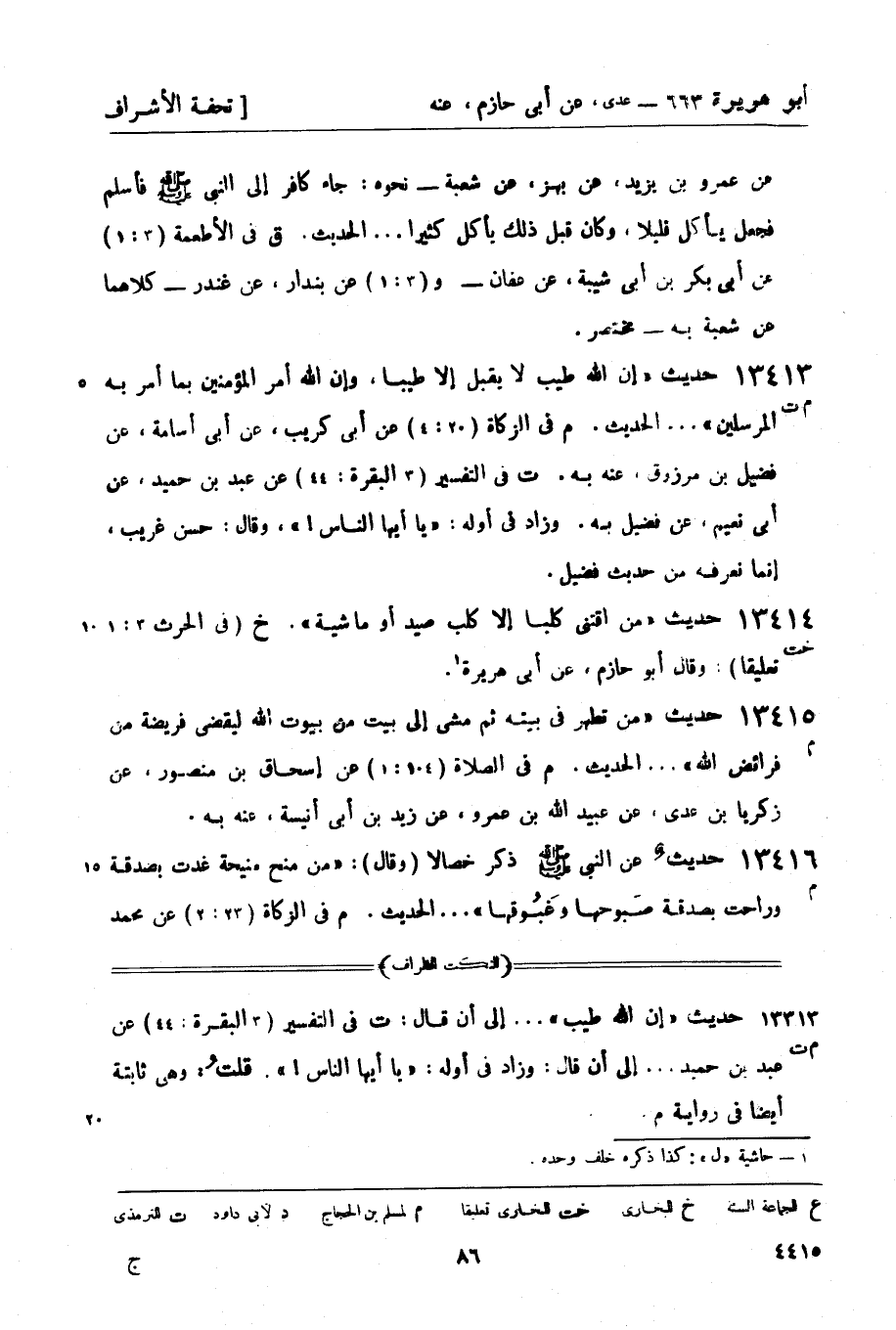13414 -[خت] حديث من اقتنى كلباً إلا كلب صيد أو ماشية. (خ) (في الحرث 3: 1 تعليقاً) : وقال أبو حازم، عن أبي هريرة 1.