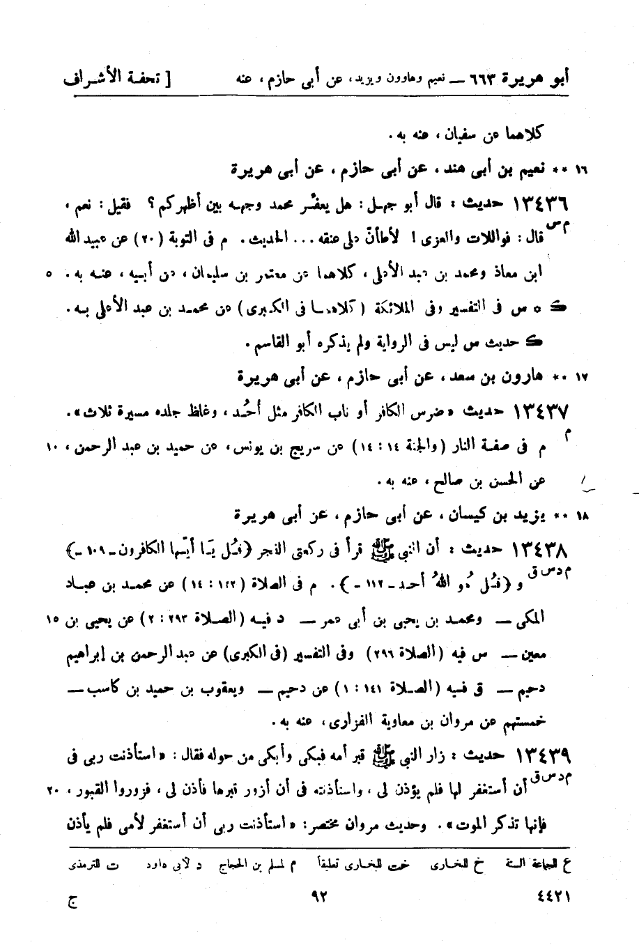 ق فيه (الجنائز 48: 1) عن أبي بكر بن أبي شيبة به. وأعاد بعضه في موضع آخر منه (الجنائز 47: 1) : زوروا القبور فإنها تذكركم الآخرة.