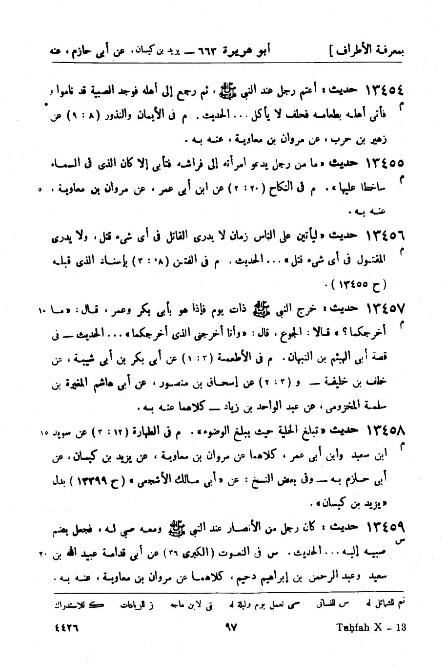 13458 -[م] حديث تبلغ الحلية حيث يبلغ الوضوء. (م) في الطهارة (12: 3) عن سويد بن سعيد، وابن أبي عمر، كلاهما عن مروان بن معاوية، عن يزيد بن كيسان، عن أبي حازم به - وفي بعض النسخ: عن أبي مالك الأشجعي (ح 13399) بدل يزيد بن كيسان.