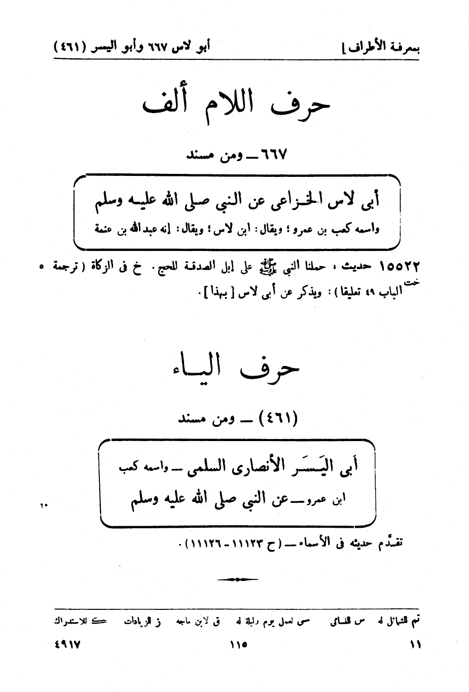- ومن مسند أبي اليَسَر الأنصاري السلمي - واسمه كعب بن عمرو - عن النبي صَلَّى اللَّهُ عَلَيْهِ وَسَلَّمَ تقدَّم حديثه في الأسماء - (ح 11123 - 11126)