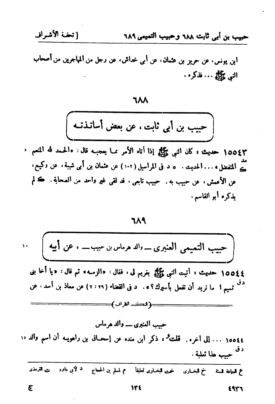 15543 - (مد) حديث: كان النبي صَلَّى اللَّهُ عَلَيْهِ وَسَلَّمَ إذا أتاه الأمر مما يعجبه قال: الحمد لله المنعم المتفضل ... الحديث. ك د في المراسيل (102) عن عثمان بن أبي شيبة، عن وكيع، عن الأعمش، عن حبيب به. حبيب تابعي قد لقي غير واحد من الصحابة ك لم يذكره أبو القاسم.