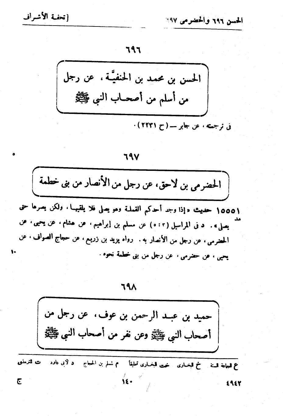الحسن بن محمد ابن الحنفيَّة، عن رجل من أسلم من أصحاب النبي صَلَّى اللَّهُ عَلَيْهِ وَسَلَّمَ في ترجمته عن جابر - (ح 2231) .
