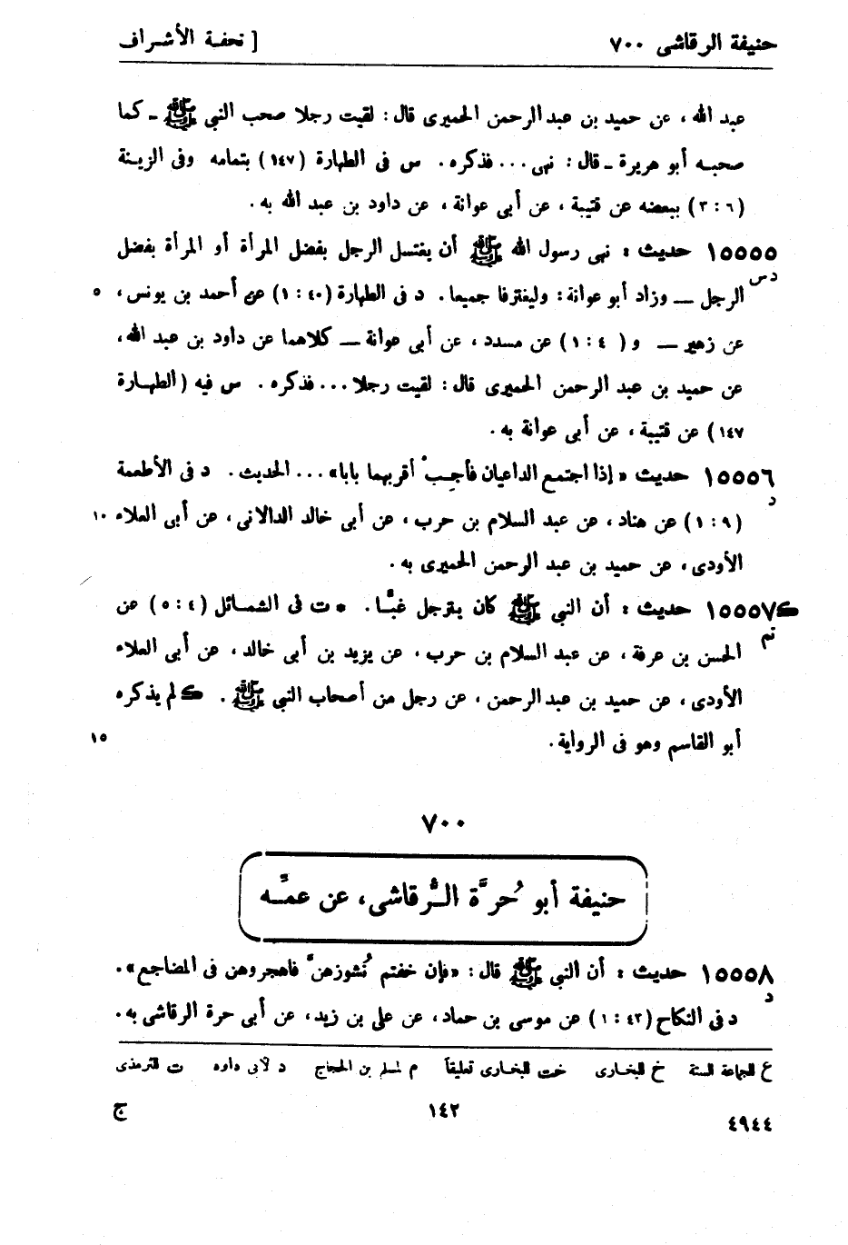 15556 -[تم] حديث: أن النبي صَلَّى اللَّهُ عَلَيْهِ وَسَلَّمَ كان يترجل غبَّاً. ك ت في الشمائل (4: 5) عن الحسن بن عرفة، عن عبد السلام بن حرب، عن يزيد بن أبي خالد، عن أبي العلاء الأودي، عن حميد بن عبد الرحمن، عن رجل من أصحاب النبيّ صَلَّى اللَّهُ عَلَيْهِ وَسَلَّمَ ك لم يذكره أبو القاسم وهو في الرواية.