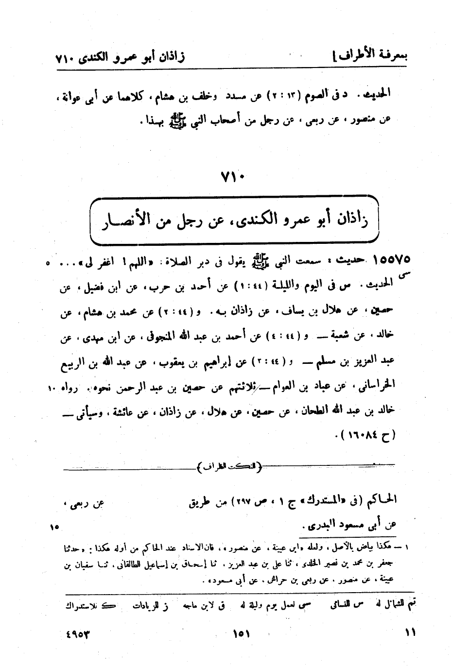 15574 -[سي] حديث: سمعت النبي صَلَّى اللَّهُ عَلَيْهِ وَسَلَّمَ يقول في دبر الصلاة: اللهم! اغفر لي ... الحديث. س في اليوم والليلة (44: 1) عن أحمد بن حرب، عن ابن فضيل، عن حصين، عن هلال بن يساف، عن زاذان به. و (44: 2) عن محمد بن هشام، عن خالد، عن شعبة - و (44: 4) عن أحمد بن عبد الله المنجوفي، عن ابن مهدي، عن عبد العزيز بن مسلم - و (44: 3) عن إبراهيم بن يعقوب، عن عبد الله بن الربيع الخراساني، عن عباد بن العوام - ثلاثتهم عن حصين بن عبد الرحمن نحوه. رواه خالد بن عبد الله الطحان، عن حصين، عن هلال، عن زاذان، عن عائشة وسيأتي - (ح 16084) .