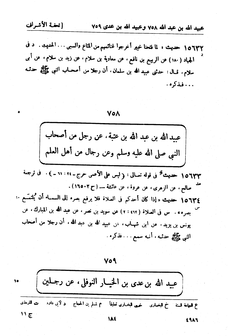 15634 -[س] حديث إذا كان أحدكم في الصلاة فلا يرفع بصره إلى السماء أن يُلتمَع بصره س في الصلاة (462: 2) عن سويد بن نصر، عن عبد الله بن المبارك، عن يونس بن يزيد، عن ابن شهاب، عن عبيد الله بن عبد الله أن رجلاً من أصحاب النبي صَلَّى اللَّهُ عَلَيْهِ وَسَلَّمَ حدثه أنه سمع ... فذكره.