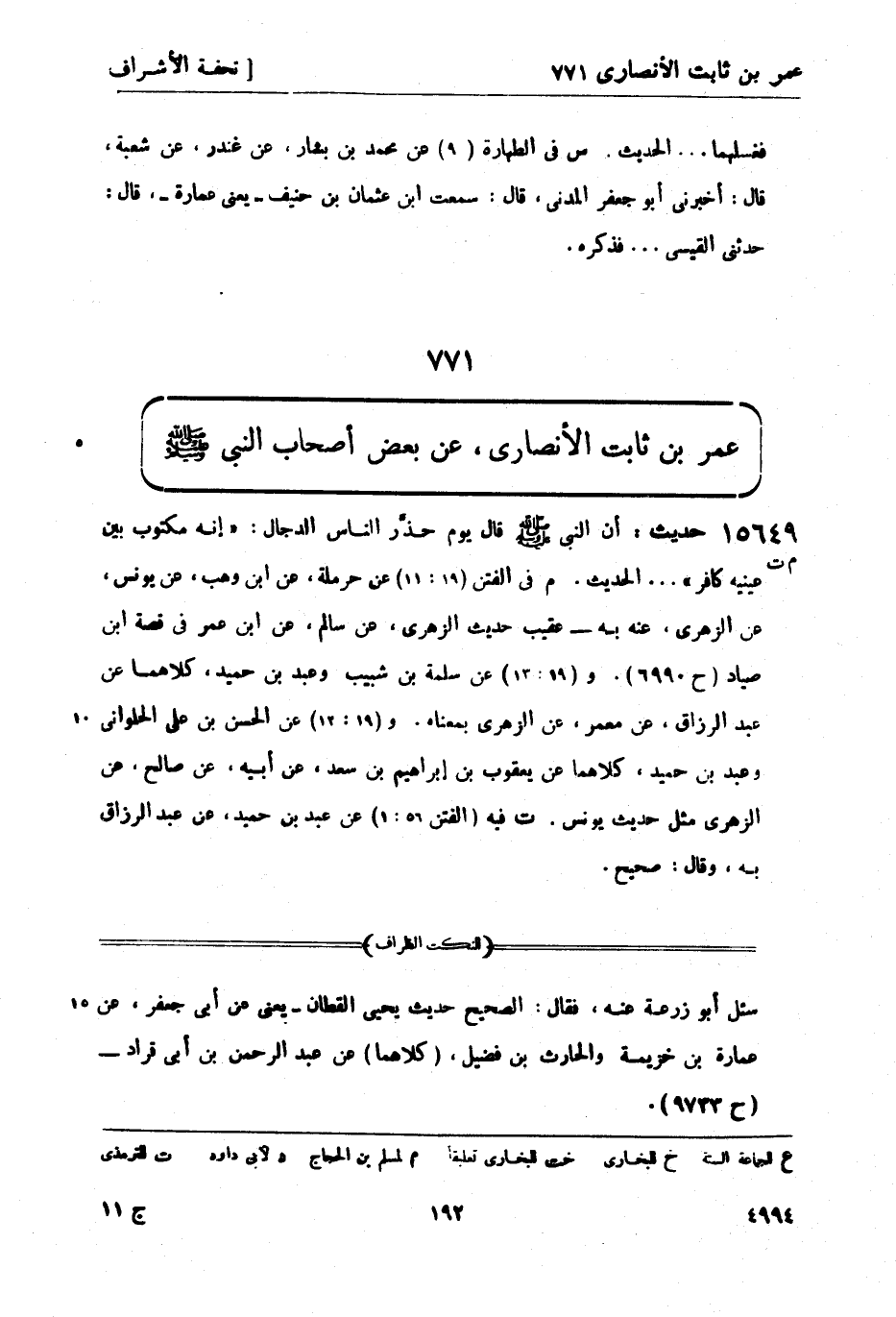 15649 -[م ت] حديث: أن النبي صَلَّى اللَّهُ عَلَيْهِ وَسَلَّمَ قال يوم حذَّر الناس الدجال إنه مكتوب بين عينيه كافر ... الحديث. م في الفتن (19: 11) عن حرملة، عن ابن وهب، عن يونس، عن الزهري، عنه به - عقيب حديث الزهري، عن سالم، عن ابن عمر في قصة ابن صياد (ح 6990) . و (19: 13) عن سلمة بن شبيب وعبد بن حميد، كلاهما عن عبد الرزاق، عن معمر، عن الزهري بمعناه و (19: 12) عن الحسن بن علي الحلواني وعبد بن حميد، كلاهما عن يعقوب بن إبراهيم بن سعد، عن أبيه، عن صالح، عن الزهري مثل حديث يونس ت فيه (الفتن 56: 1) عن عبد بن حميد، عن عبد الرزاق به، وقال: صحيح
