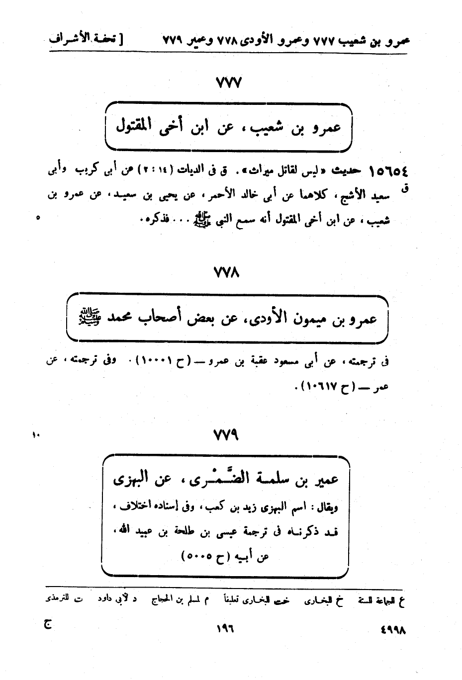 عمرو بن ميمون الأودي، عن بعض أصحاب محمد صَلَّى اللَّهُ عَلَيْهِ وَسَلَّمَ في ترجمته عن أبي مسعود عقبة بن عمرو - (ح 10001) وفي ترجمته عن عمر - (ح 10617)