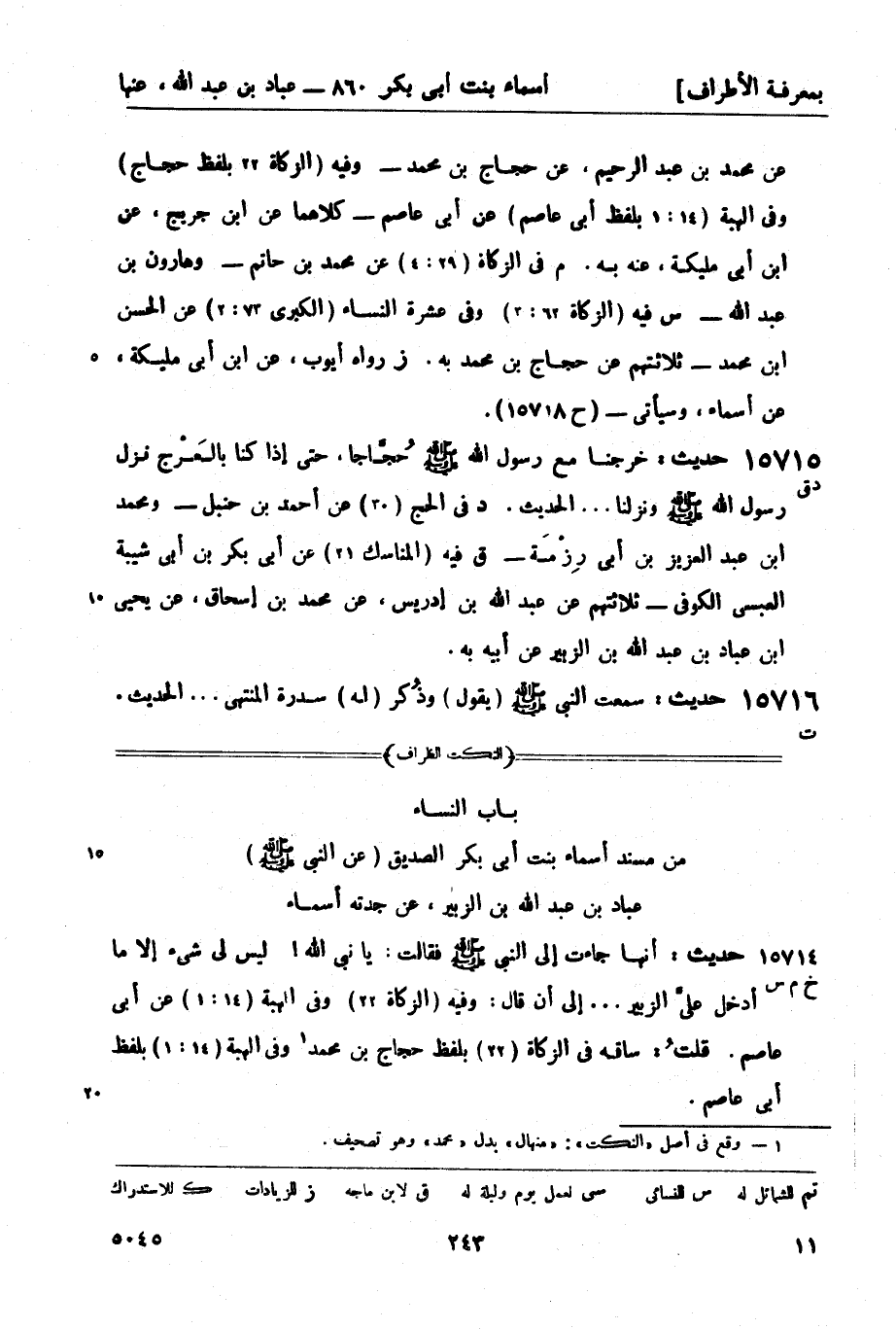 15716 -[ت] حديث: سمعت النبي صَلَّى اللَّهُ عَلَيْهِ وَسَلَّمَ (يقول) وذُكر (له) سدرة المنتهى ... الحديث. -[244]- ت في صفة الجنة (9) عن أبي كريب، عن يونس بن بكير، عن ابن إسحاق بإسناد الذي قبله (ح 15715) وقال: حسن غريب.