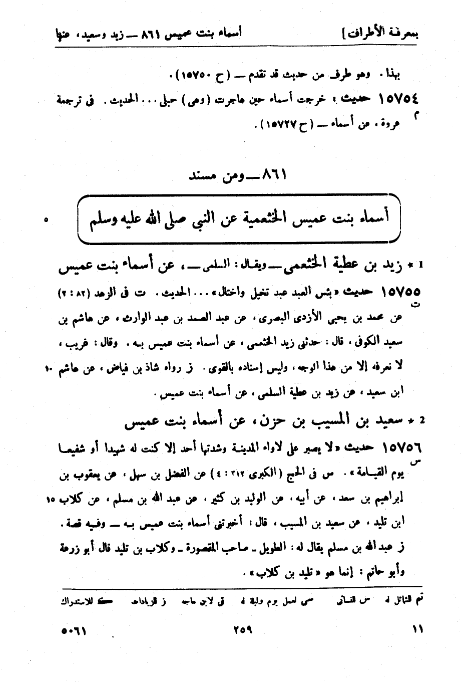 15755 -[ت] حديث بئس العبد عبد تخيل واختال ... الحديث. ت في الزهد (82: 2) عن محمد بن يحيى الأزدي البصري، عن عبد الصمد بن عبد الوارث، عن هاشم بن سعيد الكوفي قال حدثني زيد الخثعمي، عن أسماء بنت عميس به. وقال: غريب لا نعرفه إلا من هذا الوجه وليس إسناده بالقوي ز رواه شاذ بن فياض، عن هاشم بن سعيد، عن زيد بن عطية السلمي، عن أسماء بنت عميس.